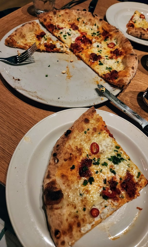 The space is beautiful and the cocktails and dessert were good but service and food was just okay. The portion sizes especially are ridiculous and we werent warned that some of the appetizers werent shareable. Also for a place that doesnt slice their pizza as theyre originally Italian, the menu is a random mix of different European regions and the pizza itself while okay, definitely didnt taste super authentic.