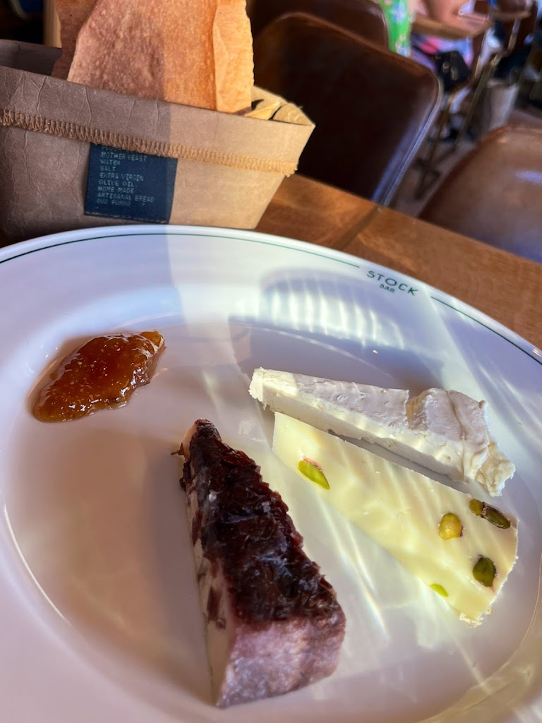 Enjoyed my lunch with friends at Stock Bar yesterday! They have a really nice setup, and the food is really good. Had a great time and will definitely come back. :) My friends tried the steaks (frites and flank), the buffalo mozzarella pizza and the one of the specials for the day, which was the rainbow trout with a corn salad, cherry tomatoes and sherry vinaigrette. There was a cheese board (probably the only thing that was in the smallest quality in comparison to everything else we tried, and the bread basket (which was great!)