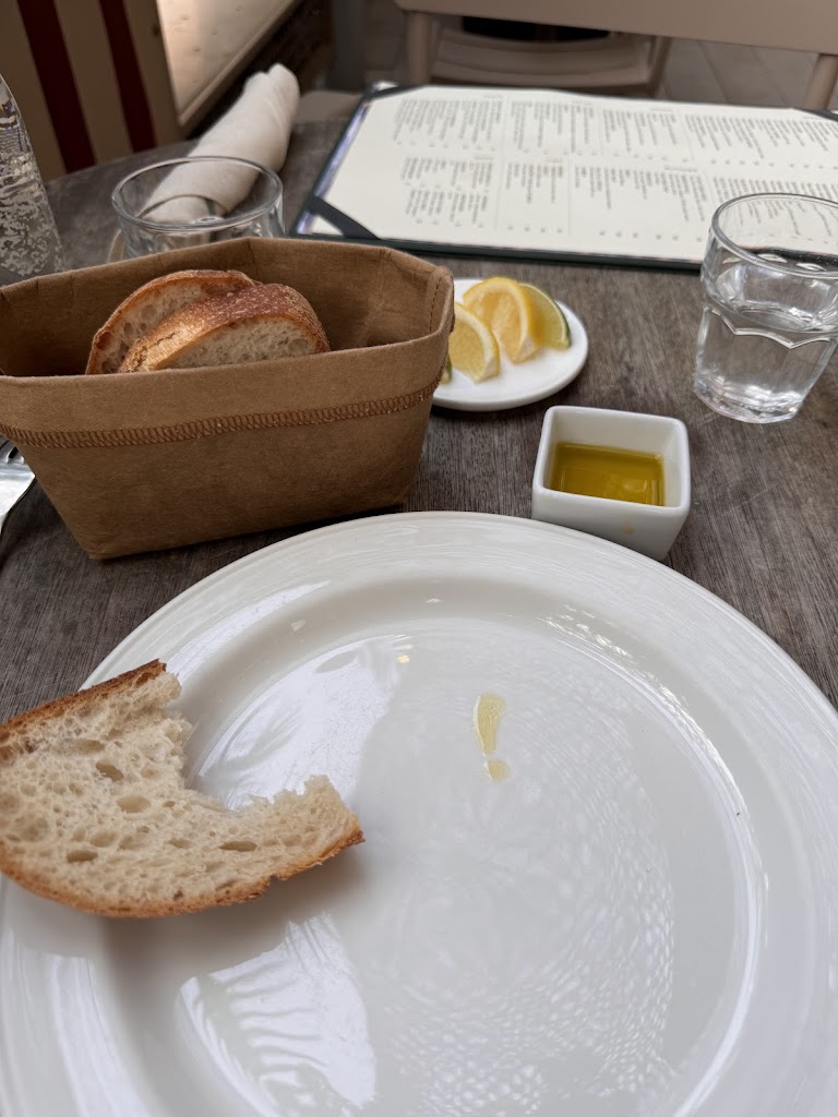 Upon arrival, we were served sparkling water to which I declined and said I do not want sparkling water however, flat is suitable. We had no clue that we were being charged for this and a glass was already poured for me. The atmosphere was beautiful, we dined inside the restaurant rather than on the patio as it was quite chilly! The calamari was extremely delicious! The service was pretty good from the beginning and continued up until dessert. Once dessert was consumed, we waited for the server to check in on us for a whole hour. Absolutely no exaggeration. I was so tired I was yawning. Finally, the bill came and we were able to leave .