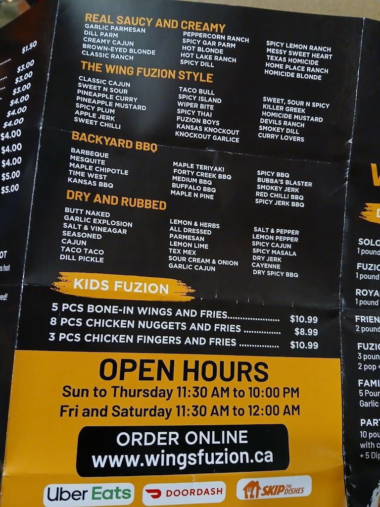Wings Fuzion is really good i come here a lot before or after i workout because my gym is right beside it. I usually get the fuzion feast because i love the fries and the wings are great. I definitely reccomend giving it a try.