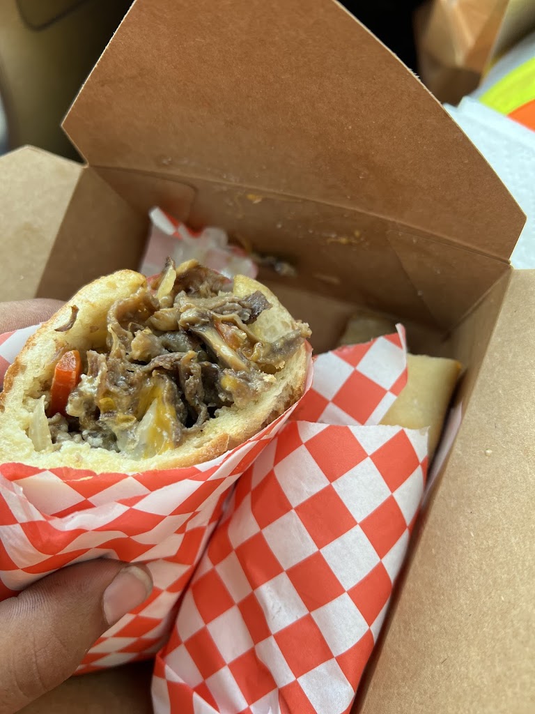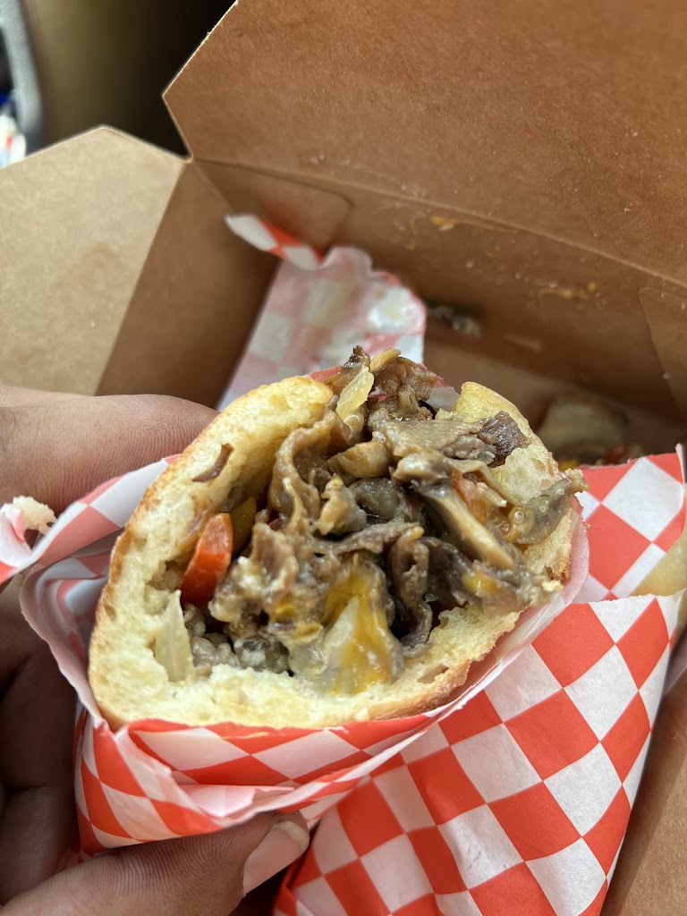 I ordered a Philly cheesesteak sandwich. It was quite good. Could use just a little bit more seasoning. And it would be best to put the bell peppers after the sandwich has been warmed up to add a little bit more freshness and crunch.