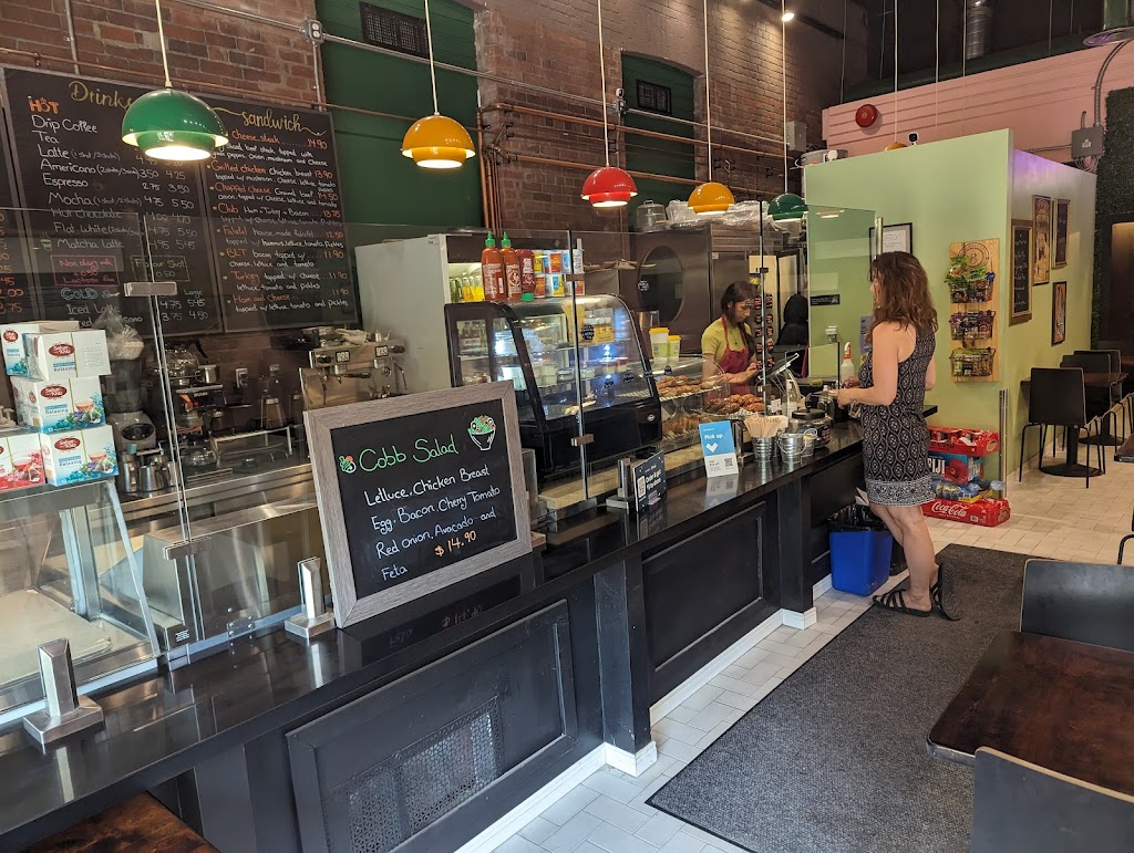 Located in the heart of Toronto near the distillery district, small but wholesome and the quality of the food is great. There’s a seating area outside of it gets too crowded which it may at peak times. Would recommend the breakfast croissant and the Philly cheese steak wrap.