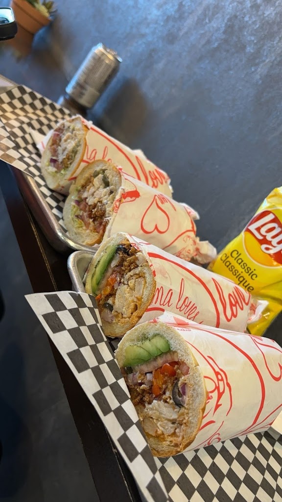 The restaurant is named “Grandma Loves You” but, may it be that “I, love,” Grandma Loves You. My third time ordering from here, and I certainly will be ordering many more times. Sandwiches are built with care, piled high with meats, vegetables and various toppings. Carefully constructed to maximize the blending of flavours and attention to textures. To perfect each sandwich that comes in rolls; the highlight IS the roll. The rolls are a thin crisp crust, with a soft airy texture that is reminiscent of a Vietnamese banh mi baguette. This order, I had the Chicken BLT Deluxe; it was generously filled and delicious. With each bite, the forefront flavours are creamy, melted mozzarella combined with the earthy flavours of sautéed mushrooms, then the crispy smokey bacon with large strips of grilled chicken, combine perfectly with the crunchy fried onions; these blend immaculately with the acid and kick of spice from the pickled jalapeños and the housemade sauce. To finish is the refreshing crisp, vegetables of shredded lettuce, tomato, and fresh onion; all held perfectly together in the most delicious bread roll. Perfection. In the past, a small sweet treat would be given complimentary with each sandwich, unsure if this practice is now discontinued; as there was no sweet surprise with this sandwich. There is a small area of tables and chairs for dining in, wheelchair accessible, free plaza parking.