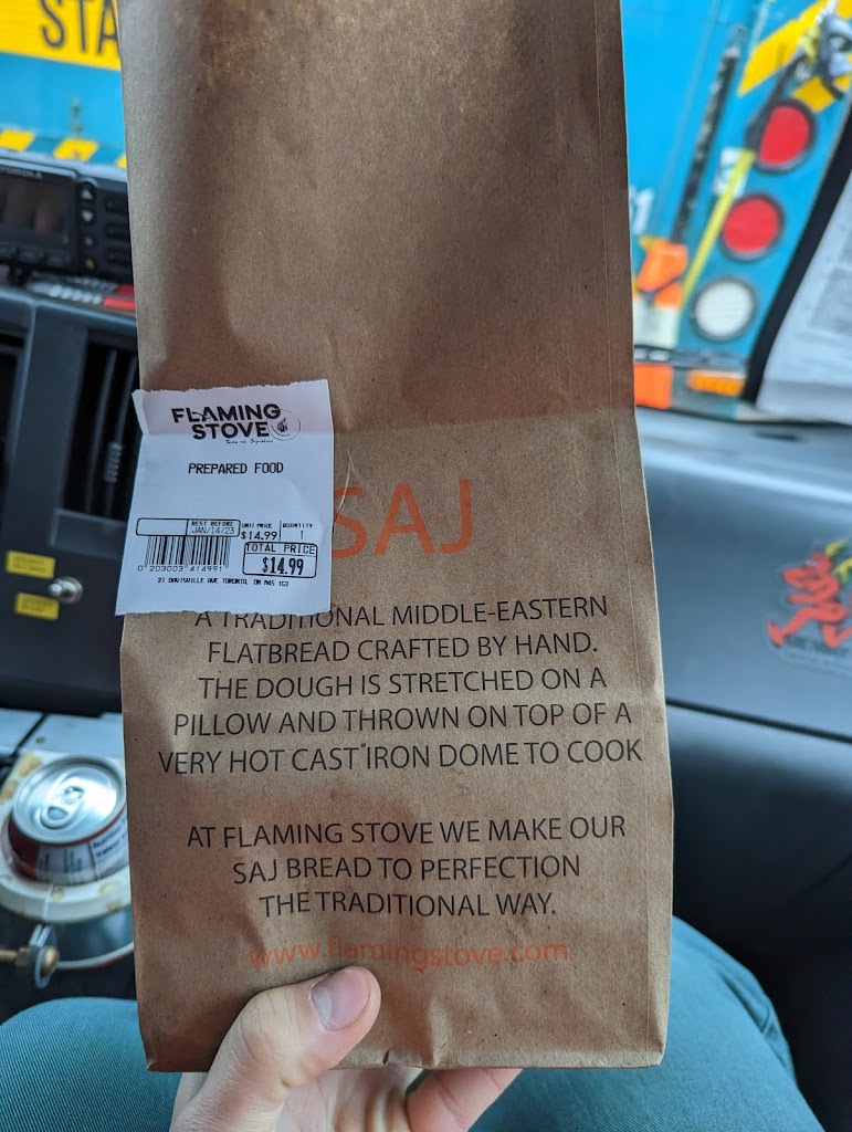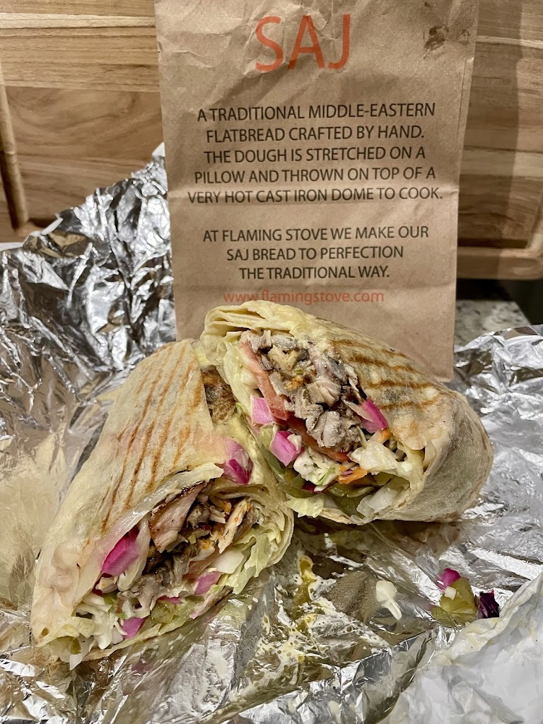 Flaming Stove has earned quite the reputation for itself in Toronto. Tucked in the back of a convenience store, their shawarma wraps are better than most of their competition around the city its on the same tier as shawarma Ive eaten in the Middle East. The shawarma itself is perfectly cooked and seasoned nicely. Its served in saj bread, which is a large flatbread akin to roti or dosa. The large wrap is needed for the array on ingredients they pack into the sandwich! Unfortunately there werent roasted/grilled vegetables available when we were there (based on other reviews it seems to sometimes be an option) but the ingredients that were available (tomato, lettuce, etc) complemented the meat nicely. My favourite was the pickled turnip. The sauces were all good as well, although the hot sauce was milder than I was expecting (next time Ill go for a double dose). One of the main negatives is that only one staff member assembles the sandwiches, so you might need to wait in line (especially now that the secret is out about this place). One potential workaround is that they have a second location in Newmarket, which I intend to visit to compare with this restaurant. Overall Flaming Stove is a great shawarma spot and worth going out of your way to Davisville to check out.