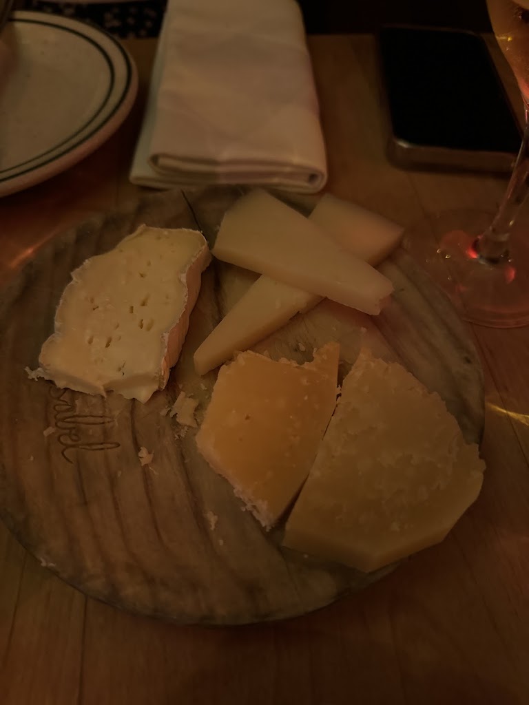 Overall, the place is cozy but way too loud. It s not easy to have a conversation there, so don t go if you re going on a date. The food was ok. It was not bad but not mind blowing either. The croqueta was good but overpriced, the cheeseboard was not it and the pork was definitely underwhelming. I guess a decent place to go with friends for a nice out.