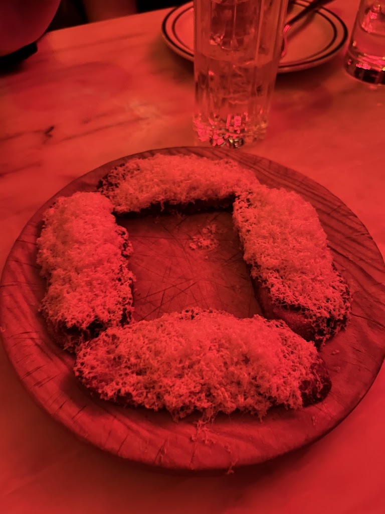 Bar Isabel became one of my favourite restaurants in the city by the end of my dinner. We ate at their outdoor patio. You’re pretty exposed and immersed with the people of the neighbourhood as you dine, which has its own contribution to the experience overall. I had someone’s dog for instance decide to sit beside me for longer than her owner would like when I had the bone marrow dish on our table. We ordered the tasting menu to get a good exposure to what they had to offer, which I’m very glad that we did. The tasting menu is a price range and we were told by our server that it depended really on how much we wanted to spend. They then asked us a few questions to gauge our food preferences, then we just started to get an assortment of dishes The amount of food was definitely more than enough to get full from. The food was delicious. In particular, the foie gras with sobresada is easily one of the best dishes that I’ve had in the city this year. It’s a lot of great ingredients prepared well.
