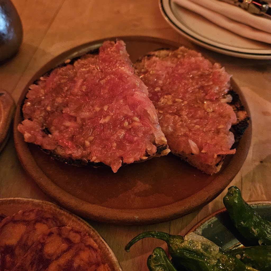 The food was absolutely exquisite. We got the Pan con Tomate which is this beautifully seasoned piece of sourdough bread, topped with freshly grated tomato, olive oil, and salt! I was so amazed at the gluten-free bread option. It wasn t just a gluten-free bread that tasted like a store bought piece from the grocery store. I was super impressed. We also got the Patatas Bravas, Quarter Grilled Octopus, Shishito Peppers and Pork Secreto with Chorizo Spice! All gluten free. I would definitely come back! Vegetarian options: Vegetarian options Dietary restrictions: Gluten free
