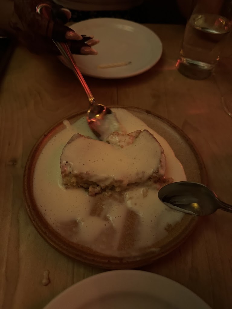 The food is pretty decent, nothing really blew me away aside from the olive oil cake; that was damn delicious. Drinks are strong! Ambience is cool but can get quite loud, had to yell at my guests to maintain a conversation. Definitely a standout spot in the city for a nice evening.