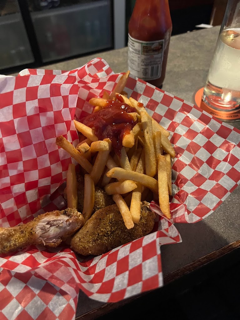 Homey, great atmosphere, good prices and super friendly service! Food was delicious, fries were crispy and the wings are amazing! Highly recommend the spicy Doritos wings. And the garlic parmigiana wings.