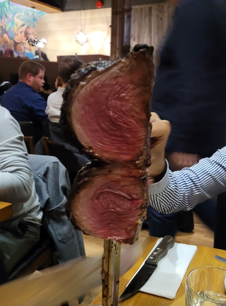 Me and my family came here for my brothers birthday. I had a magnificent experience. The food was cooked to a beautiful medium rare (for all the meats.) The cheese bread was nice and cheesy, and the cuts of steak were very high quality. The atmosphere was really nice with all the colorful lights and music, and the service was really good, especially with how often and how large they gave portions of meat. I recommend people who love steak (like me ) And would certainly come again.