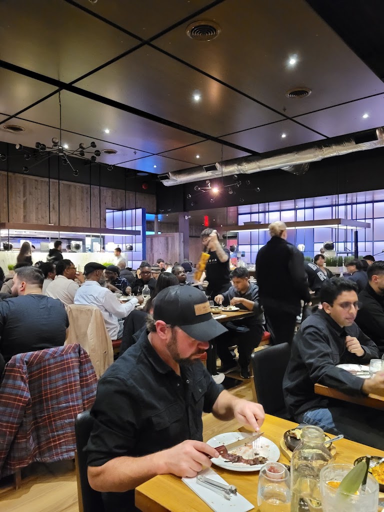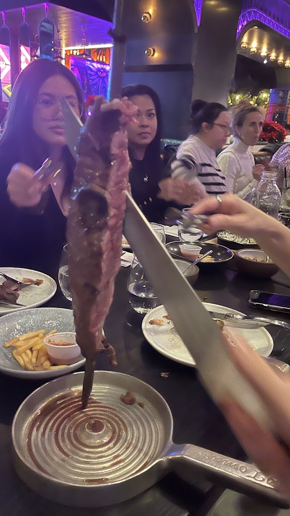 The good: Restaurant is neon vibes and layout is nice clean. Brussels sprouts is surprisingly delicious, seasoned and cooked great! Probably one of the top apps on the menu Top sirloin, picanha steak, shirmp, and Gelato. Some of the servers are nice... cannot say the same for the rest. The BAD: BEWARE ABOUT THIS PLACE Scammy and chince with servicing the whole menu. Make sure you check your bill before you pay or you will be taken advantage! Not the first time they have messed up our bill. If you order alcohol, they would almost hope you drink enough so you dont remember. Also gratuity is set 18%. Dont just sit and wait around hoping youd get to try everything if you just wait. You dont sat for about 2.5hrs and even when requesting certain meats, they still dont arrive to the table. Once they come out with some different kinds, they cycle back with the same few items. The Parm cheese steak is one that is in the rotation all the time. One star for the cleanliness of the space, and another for some of the dishes that were tasty. I cannot see giving any higher than that because the rest of the food is subpar, or cold. Long wait time between meats. Dishonesty. Service could be better Im terms of serving the meats. No show time during the time we visited. Was in the space for a total of 3 hours...