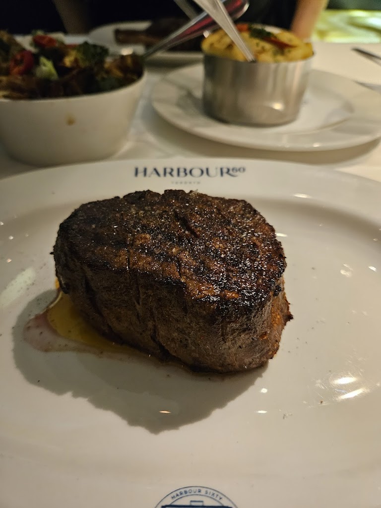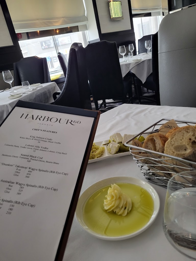Harbour 60 is certainly an investment, the prices are steep and I m not entirely sure if it s worth it. The service when I went was very 50/50, during the service, the waiter felt as though he was looking down on my girlfriend and I, I think because of our young age. I m all for good service, but there were parts of the night in which it felt like our server was flirting with my girlfriend although I could be looking a little too deep into that. Also, something I found extremely strange was that when we got a Togo bag for our food, our server poured a bottle of water into it thinking we wouldn t see and then tried playing it off like nothing happened?? It was very bizarre and something I never experienced before in a restaurant regardless of status. I say the service was 50/50 because at the end of the meal, our server and I had a nice conversation about wagyu meat in which he recommended me a few butcher shops in Toronto and mentioned that the restaurant had an Australian wagyu which was cheaper and better than the Japanese A5 and also not on their menu. Also, the server went out of his way to hotspot my girlfriend so she could order us an Uber back home which I very much so appreciated the courtesy of. The food itself was rather hit or miss, the sides (we got the truffle Mac and cheese and truffle fries) were honestly nothing too special despite being rather large portions of food. I feel as though the price was justified in the portion sizing of the sides rather than the quality and I ve had better sides of each dish at different restaurants (stk for truffle fries and Ruth s Chris for Mac and cheese). The entrees themselves however were fantastic. My girlfriend s chicken entree was great in all aspects and my Japanese wagyu steak was everything I could ve hoped for in my first time trying wagyu. To put it in perspective, it was comparable to eating the piece of fat on a steak, but it was the entire steak if you can picture that. The ambiance was interesting to say the least. Harbour 60 has a much more casual vibe to say a place like ruth s Chris and is very unorthodox for a high-class steakhouse what with drake songs being played instead of day lounge music. This factor didn t hinder the experience however I did find it to be quite out of character for what I m traditionally accustomed to. Overall, I would say harbour 60 is worth checking out despite its flaws.