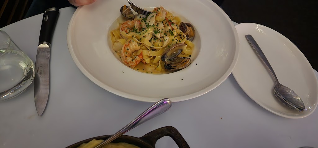 Its not like it used to be. Seafood pasta had little seafood and very bland. Read other reviews they said the exact same think, bland.Crabcakes just OK, side of Brussel sprouts I guess put on grill were burnt, side of mushrooms were just tiny little ones , they used to be big, not the same as it used to be. My $50 glass of wine was good. Good service Parking: Nothing more
