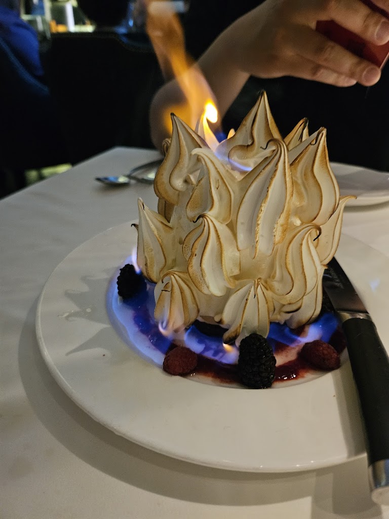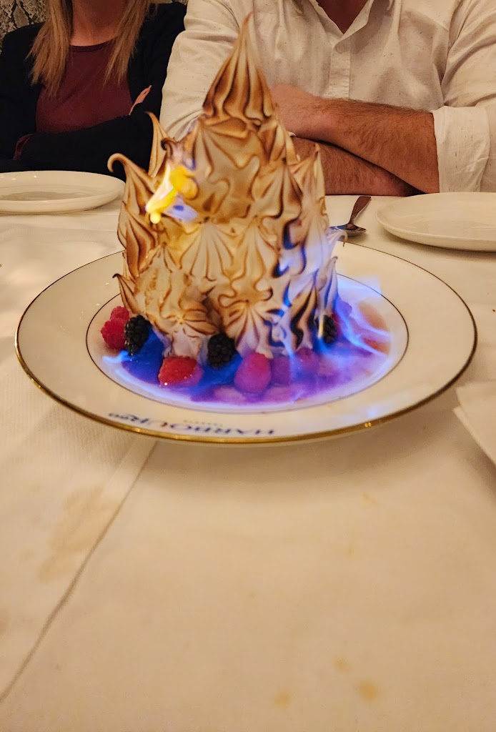 I dont like leaving bad reviews But when one goes to a place like this, one expects perfection. Well, this was not even close We were seated on the outdoor patio that was tented in the middle of a storm. Upon booking, it was not made clear that our table was outside. And we were told that indoor was fully booked and we couldnt move ( it didnt seem like it was fully booked) The tent was dark and noisy, and the wind was blowing, making the sides flop. The space was not properly heated. The service was excellent However, the food was barely edible It could have been great. Unfortunately, someone had a very heavy hand with the salt. We had the rossini filet. Meat was nice and tender, but the crust was salty, and the sauce was very salty. Anything it touched became way too salty We actually had to send back the lamb chops it was so salty Even the sides were over salted, Brussel sprouts and mashed potatoes. We had the baked Alaska for dessert. It looks cool, but it is pretty lame, and there was way too much alcohol on it. Its definitely not worth the price It was a very disappointing experience