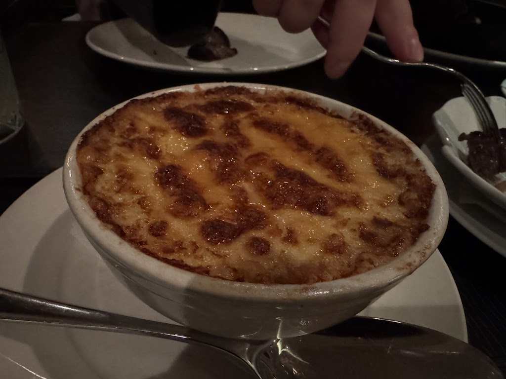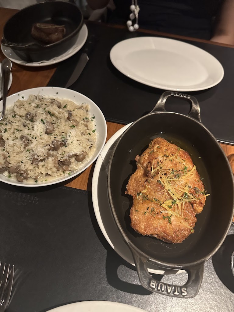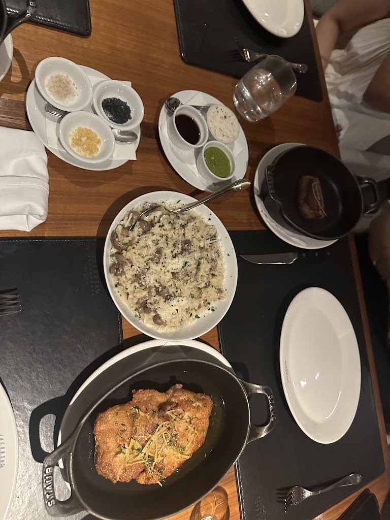 The service is definitely 10/10 here. Food is nothing extraordinary. It’s good but that’s expected with what you’re paying. The risotto is average but the potato gratin was delicious. Steaks and chicken are also good but nothing extravagant. The desserts are rich - we were a party of 4 and almost tried everything. The atmosphere inside needs improvement. Does not look super upscale inside.