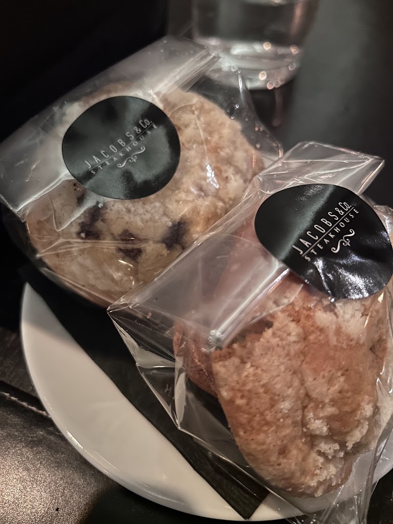 The caesar salad is excellent. Made in front of you and the portion is generous. Highly recommended. The bread they bring to the table is also excellent with the garlic butter. The seabass ceviche was very good as well. My risotto was good but the rice was slightly undercooked. Lastly, the steak came out lukewarm, not hot as I would have liked it. I assume this is the steak cooling from the resting process. If Id change anything, Id want my steak coming out hot. Id give my overall food experience a 3.5. The service was top notch. Our server was friendly but all the servers and wait staff are very attentive and polite. They do make you feel like a respected customer. The brownies and muffins at the end of the service was a very nice surprise. The atmosphere was nice. Nothing fancy but also not bad at all. Just neutral. Overall, it was nice to try Jacobs. Not a bad experience but also not one where Ill be thinking to myself, I really want to go back there.