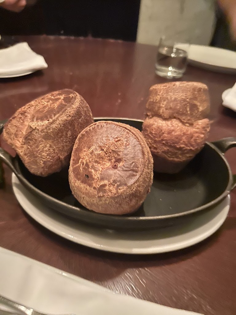 Service is top-notch here!! Popovers and herbed butter could use a bit of salt. The steaks were cooked as requested. Caesar salad was good and prepared beside your table. Duck fries are a must order.