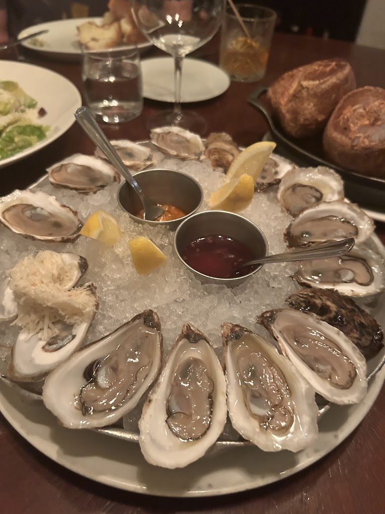 Had a lovely experience there. Loved the backed oysters and dry aged California ribeye (tasted better than their halal wagyu). The bread and butter was amazing. They also gave us some complimentary chocolate muffins to go. Those were so good. Our server recommended us the Jacobs Caesar salad but it wasn t worth it. Too sour/citrusy for our taste bud. Not a fan of their desserts as well. We had flourless chocolate cake with vanilla ice cream and coconut cream pie.
