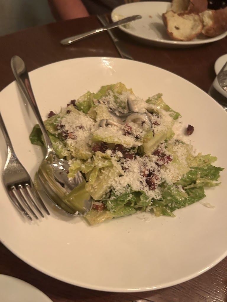 Our experience at Jacobs & Co. was okay, the server was kind and knowledgeable. He helped us pick a nice wine to go with our meals. The Cesar salad was not fresh to be honest, had heard a lot about their table side Cesar salad but it felt like the lettuce was not fresh which was disappointing. We got our steak along with Brussels sprouts and mushroom risotto. The Brussels sprouts were made well in a teriyaki sauce, the risotto was very bland and not cooked well. The steak was okay, nothing extraordinary. Could be that we had high expectations coming here but it didn t live up to the hype. Will give it another try