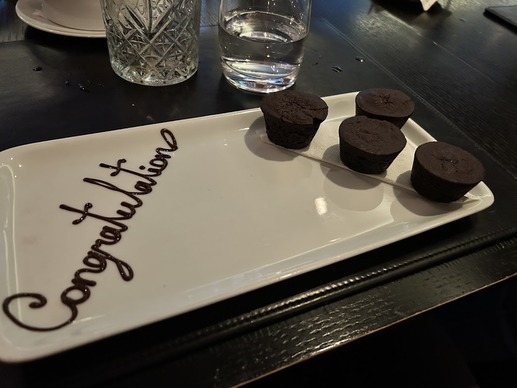 Really great food and the service was good, the valet was very nice and at the end they gave us really good muffins tasted amazing