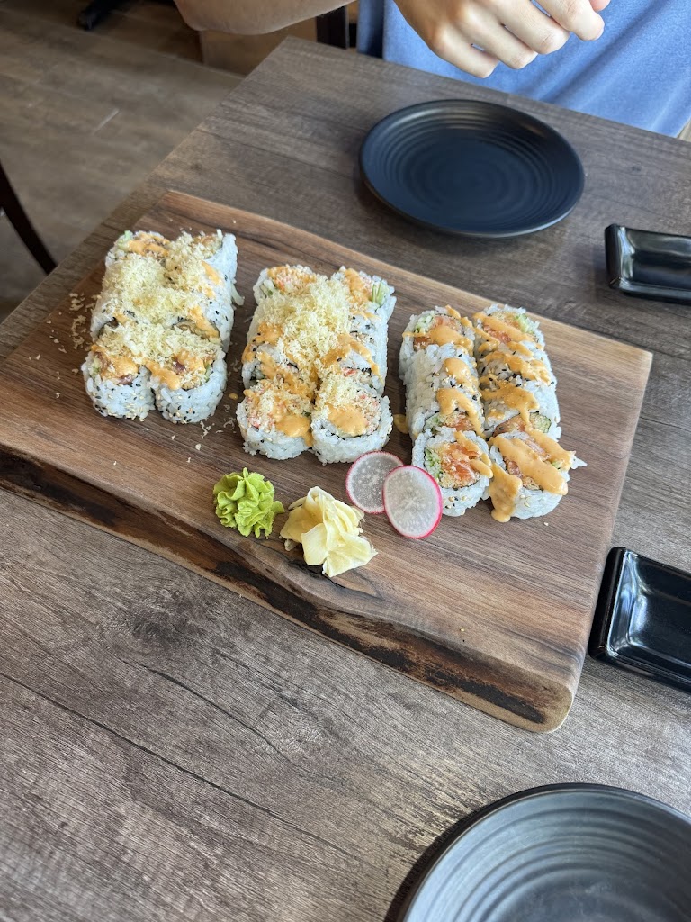 Cool atmosphere, great service. We ordered the caterpillar and ocean spicy roll and were very happy with them. Happy to finally have a sushi spot in the neighborhood