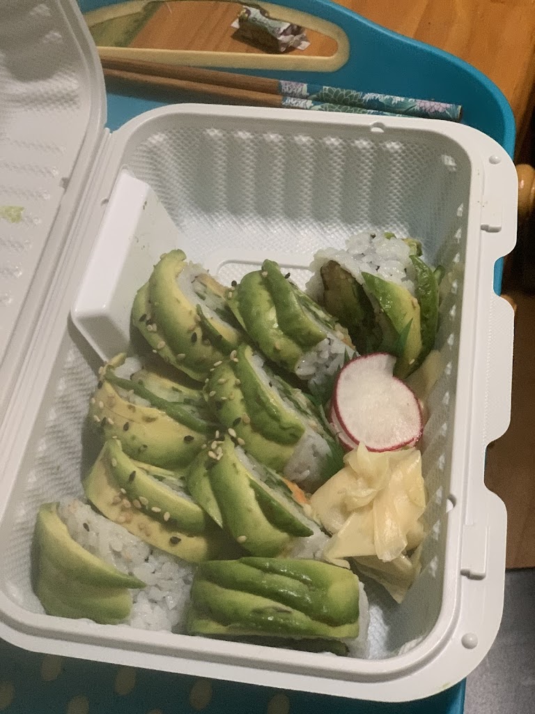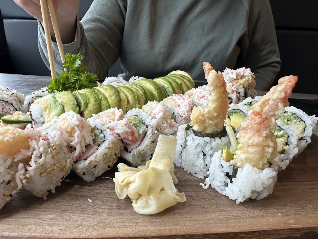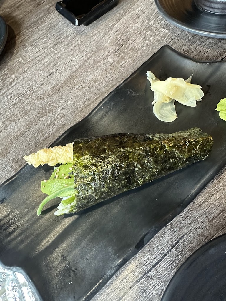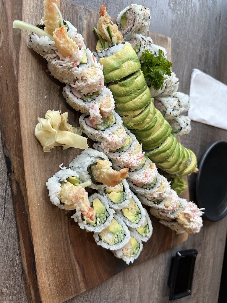 I was already excited to have a new sushi place in the neighbourhood, but a place thats got extremely sweet service, great prices (especially these days) and generous portions is deeply exciting. We ordered four rolls, tempura, and miso soup, and our bill came to just over $40 before tip. The tempura was light and crispy, a little greasy (but when isnt it?). The rolls were delicious, and packed with great ingredients. Even the avocado roll had a light coating of rice, with the cado just bursting out, reaching for freedom. I particularly liked the tilapia and green onion roll - a pleasant and refreshing surprise. The staff were friendly and kind (despite us being those customers that show up an hour before closing), service was fast, and they checked in regularly. Highly recommended for your belly, your wallet, and your general sense of goodwill towards people. Vegetarian options: Lots of vegetarian rolls available.
