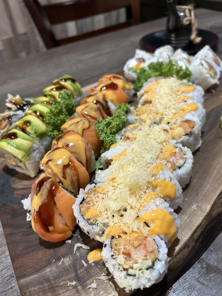 Large portions and really fresh cold fish. Some of the rolls seemed unfinished. The sushi is dramatic in appearance but a lot of the rice fell apart. Food : 3/5