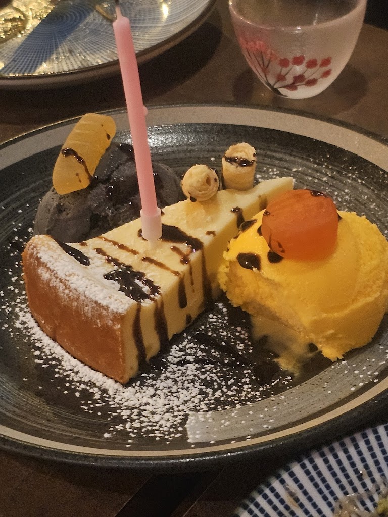 I had a great time with my friends. We had okonomiyaki and the sashimi platter which were very fresh and delicious The staff were very welcoming and kind. I had a mini birthday celebration as well prepared by the restaurant, how kind of you!