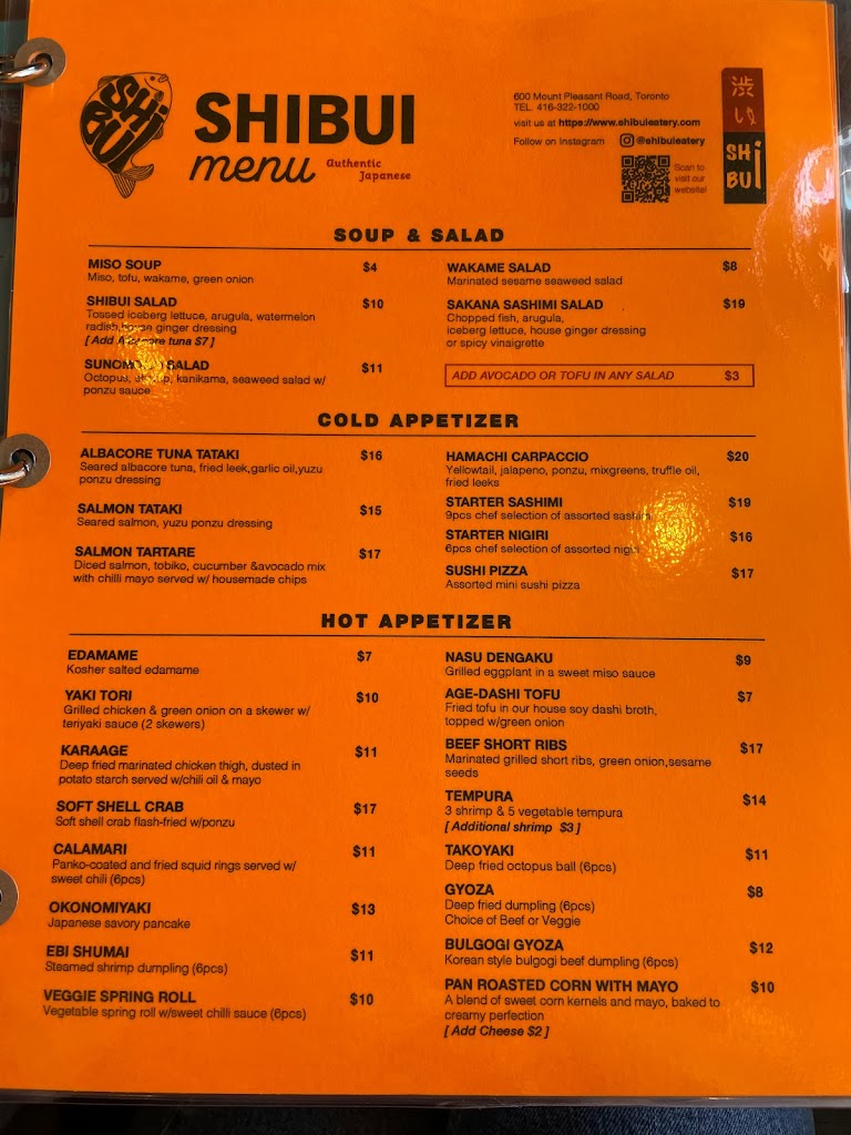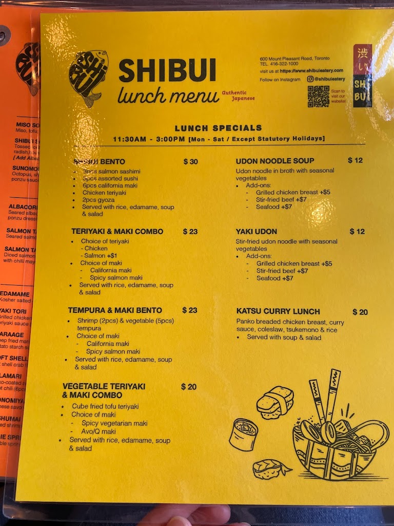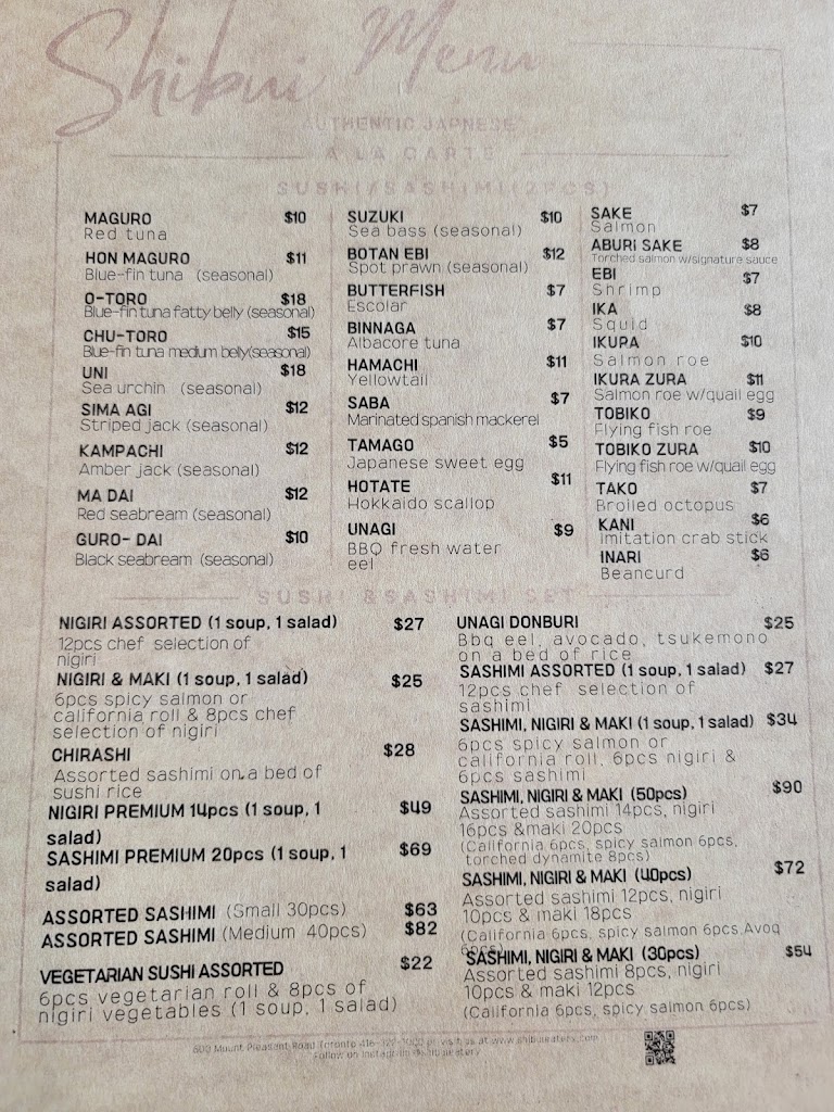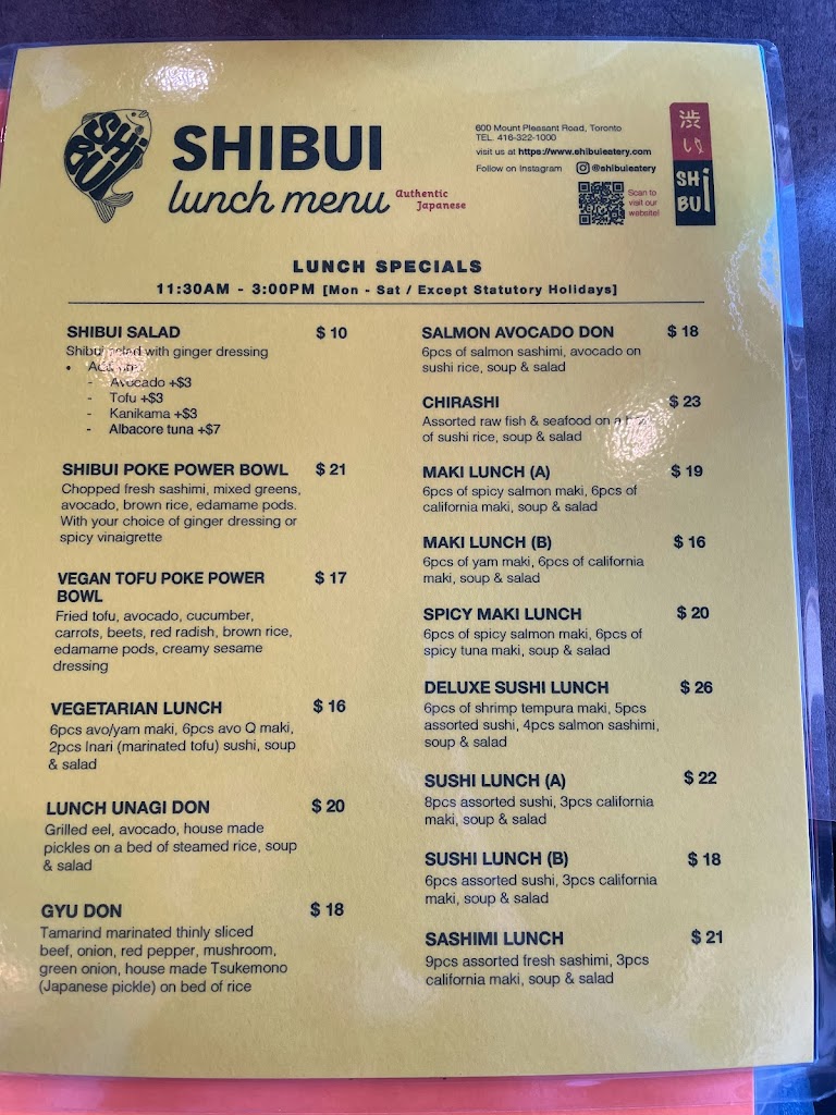 Shibui Sushi Japanese Eatery has become a staple for getting sushi, not only on Mt Pleasant but in the whole of the City of Toronto. The staff at Shibui are unmatched. They are welcoming when you walk in and are extremely efficient. The contrast between their building and their food is unlike anything I have ever experienced, the dining, atmosphere, and food is all 5/5. Shibui pulled me from a dark place when i was at my lowest, thank you Shibui for all you have done for me.