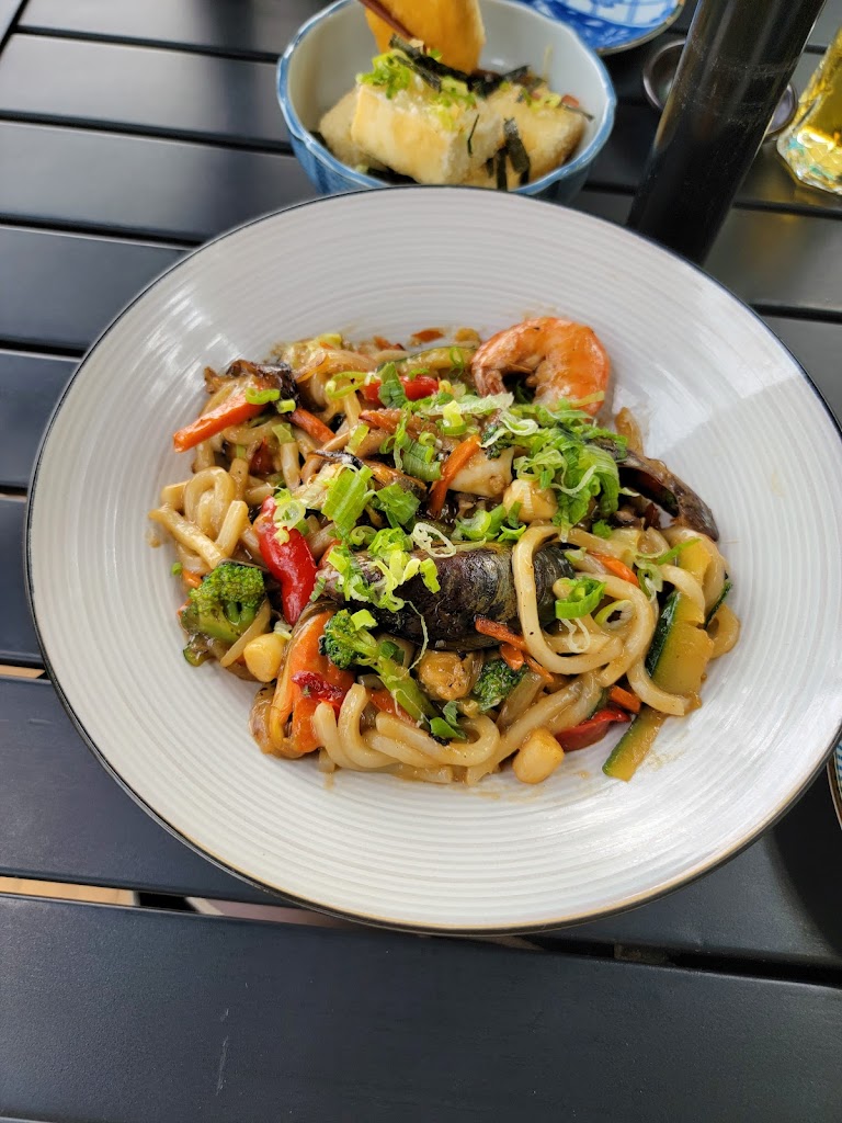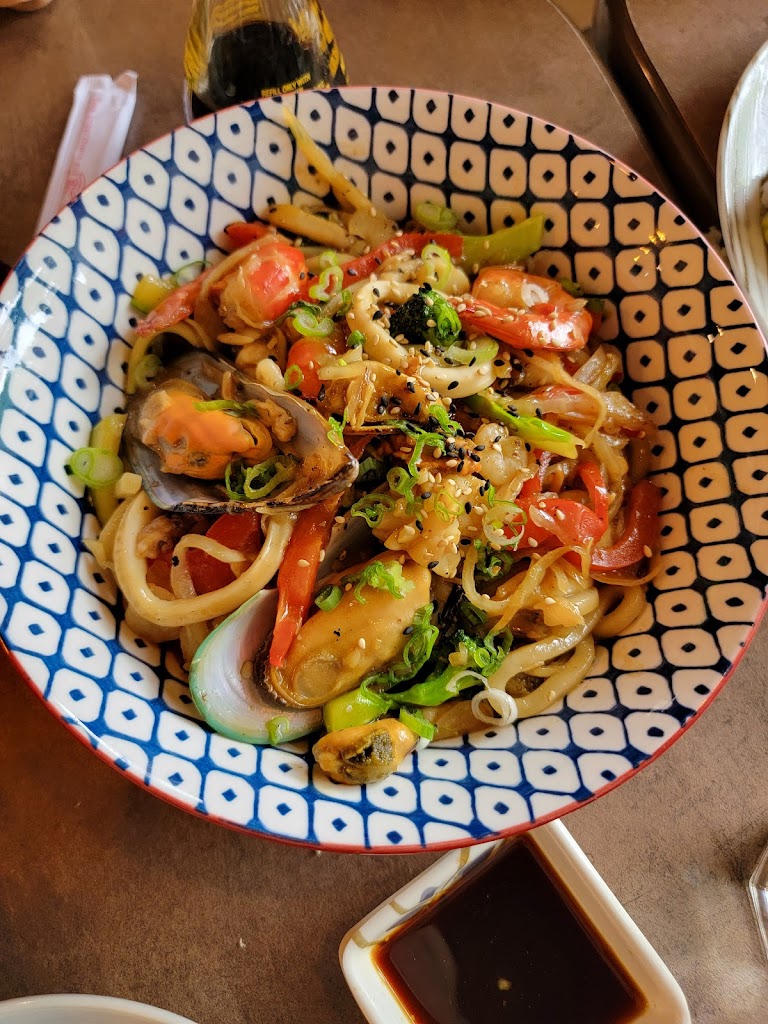 Found this place accidentally during one of my evening walks. They have small indoor dining space and larger patio seating outside. The staff is kind and proactive. As a vegan, options are limited. Veg gyoza is tasty and tried the Avocado/asparagus/mushroom maki which was filling for one person. Vegetarian options: Menu has few veg options. Enough to explore this place one time as a vegetarian.
