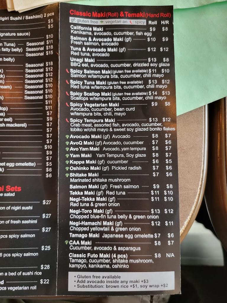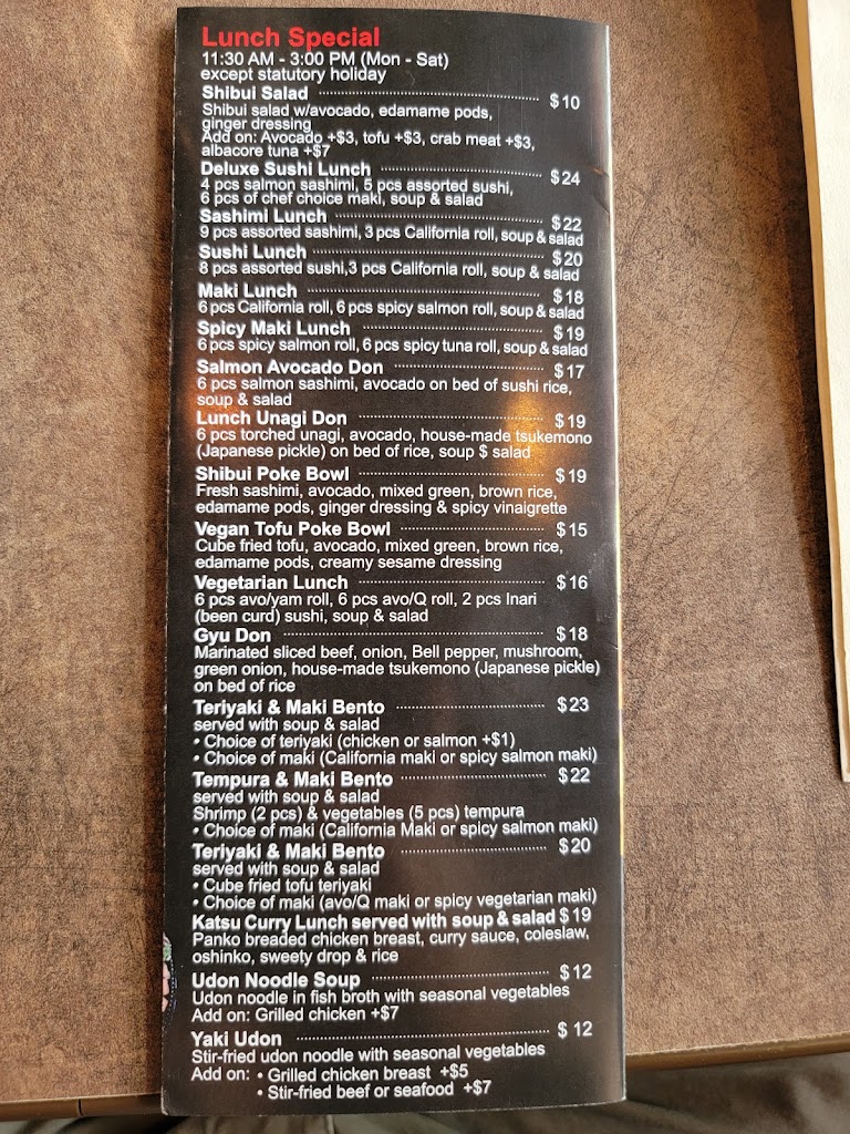 I have eaten here many times. It is a favourite of mine, especially for lunch where I get a sushi roll, soup, and the wakame seaweed salad. The staff are extremely helpful and friendly. Everything that comes out of the kitchen looks delicious and is made fresh.