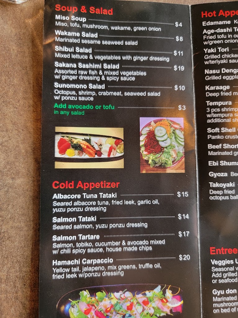 Amazing experience. Everything is super fresh. Friendly and welcoming environment. I would definitely come back. I like how they are explaining different types of sashimi.