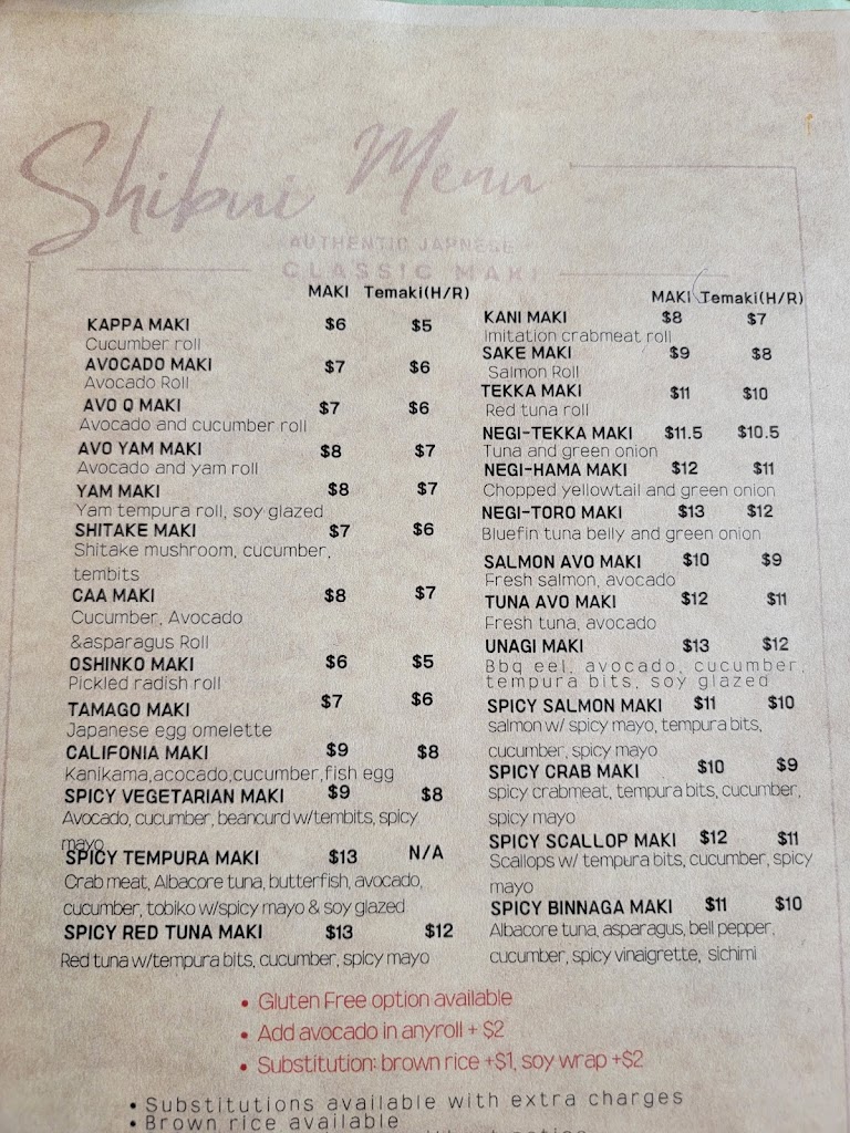 Shibui Sushi is a restaurant that uses Japanese traditional vinegar and high quality ingredients. All menu are delicious and awesome. And staffs are all kind. :)