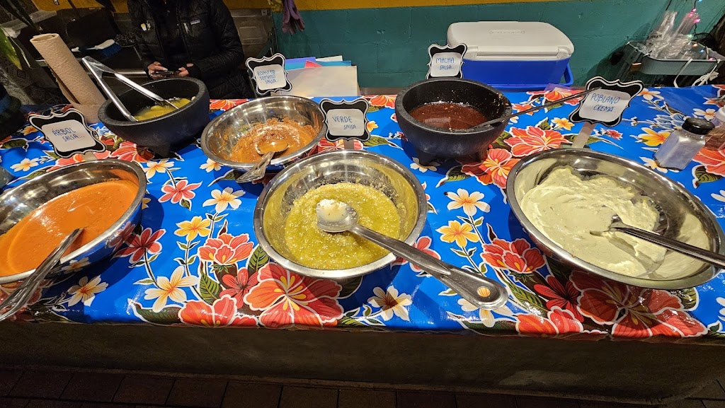 Delicious. There are many taco restaurants nearby, but this one is the best in terms of taste. There are three types of salsa, but be careful of the spicy hot salsa..! The Cartinas meat is soft, there is no smell, and the portion is quite large. Women will feel full if they eat two to three. And it is unique. Its made with two taco shells attached, but its a bit pricey at $8-9.50 per piece, so it would be good to eat as a snack rather than a meal when youre hungry. Oh, and theres only a standing table!