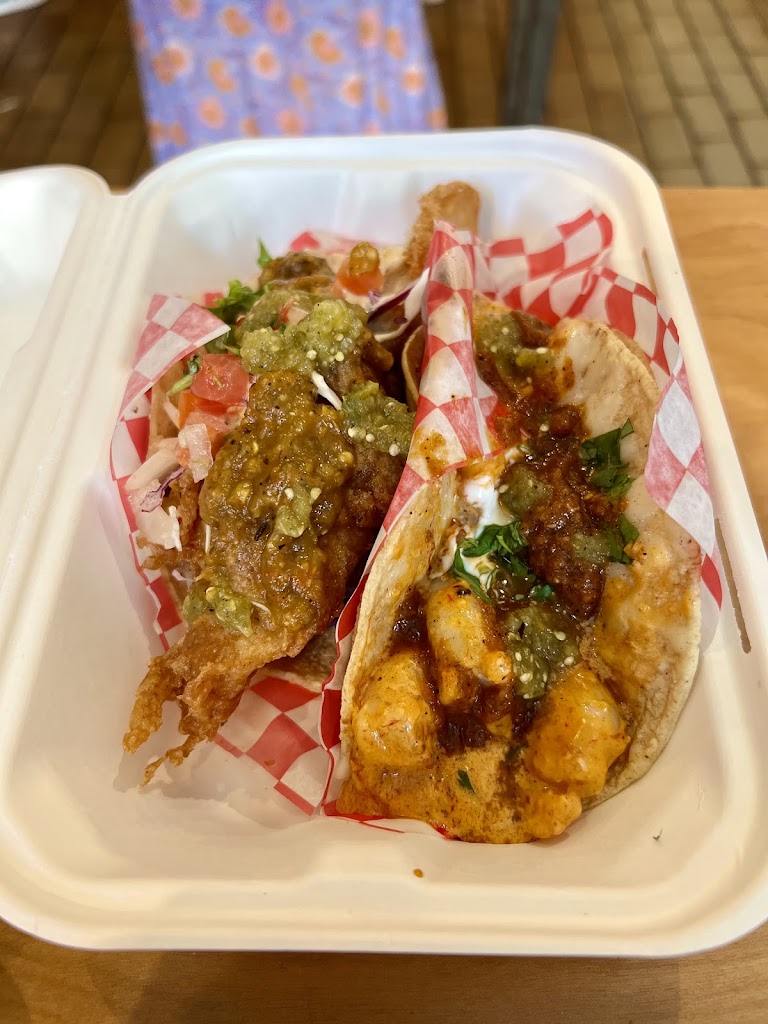 Carnitas and baja fish taco. The fish was my favourite - sooo good! Highly recommend. Thermals is also really good and has a great kick. Small stand up eatery, so grab a quick bite and go.