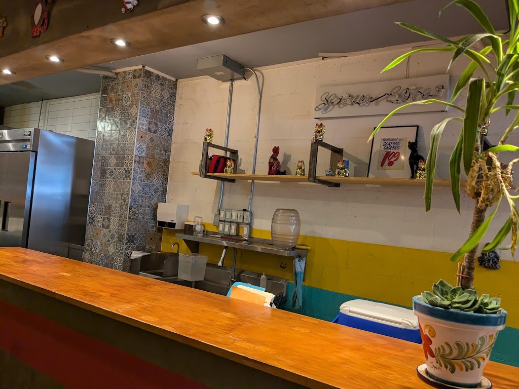 Very casual place, no seating possibilities except close to entrance (space for 2-3 people). We ordered tacos, one with pork, the other with the octopus. Both were very fragrant. The problem with most mexicans in North America is that they are usually too oily/cheesy and lack in flavour. But Seven Lives really delivers in terms of flavours. Salsas are good too. The setting is very casual, so people could wonder about cleaniness, but rest assured, the kitchen and toilet were both clean! Highly recommend if in the area!
