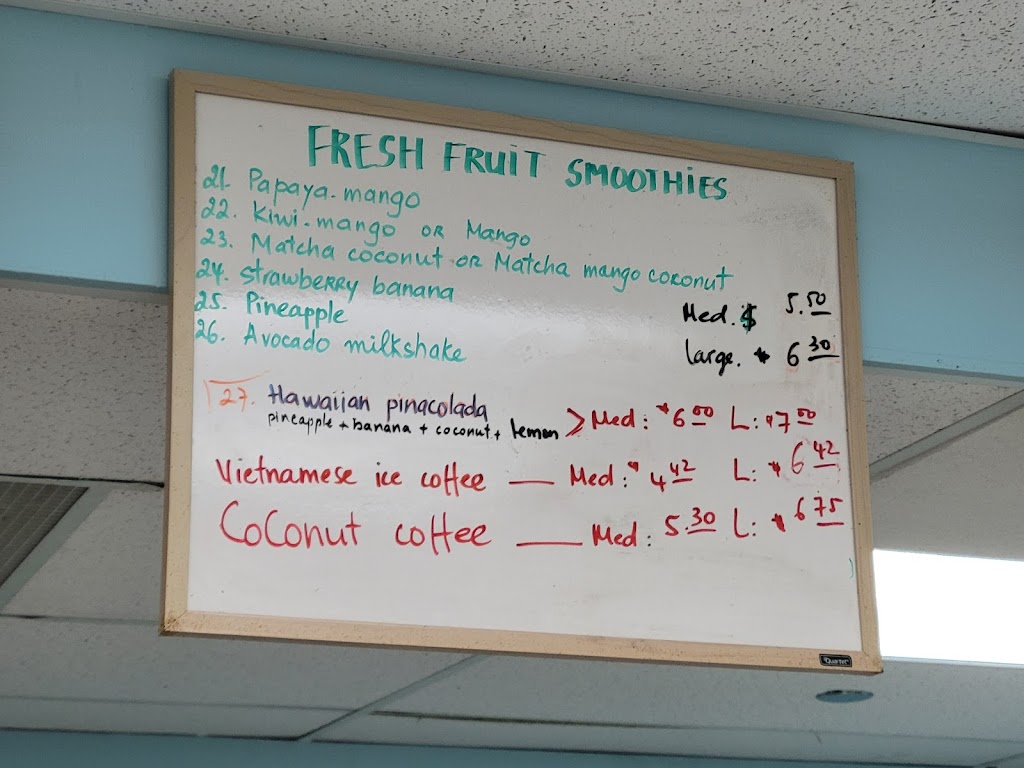 Always happy to support local joints. Very nice lady that helped us. The Vietnamese coffee and coconut coffee were to die for. Also my kids approved the milk bubble tea. Love that she used high quality ingredients like condensed milk rather than sugar. Food was great dispute having it to go and not eating it right away. Will visit frequently whenever we’re in the area. Thank you!