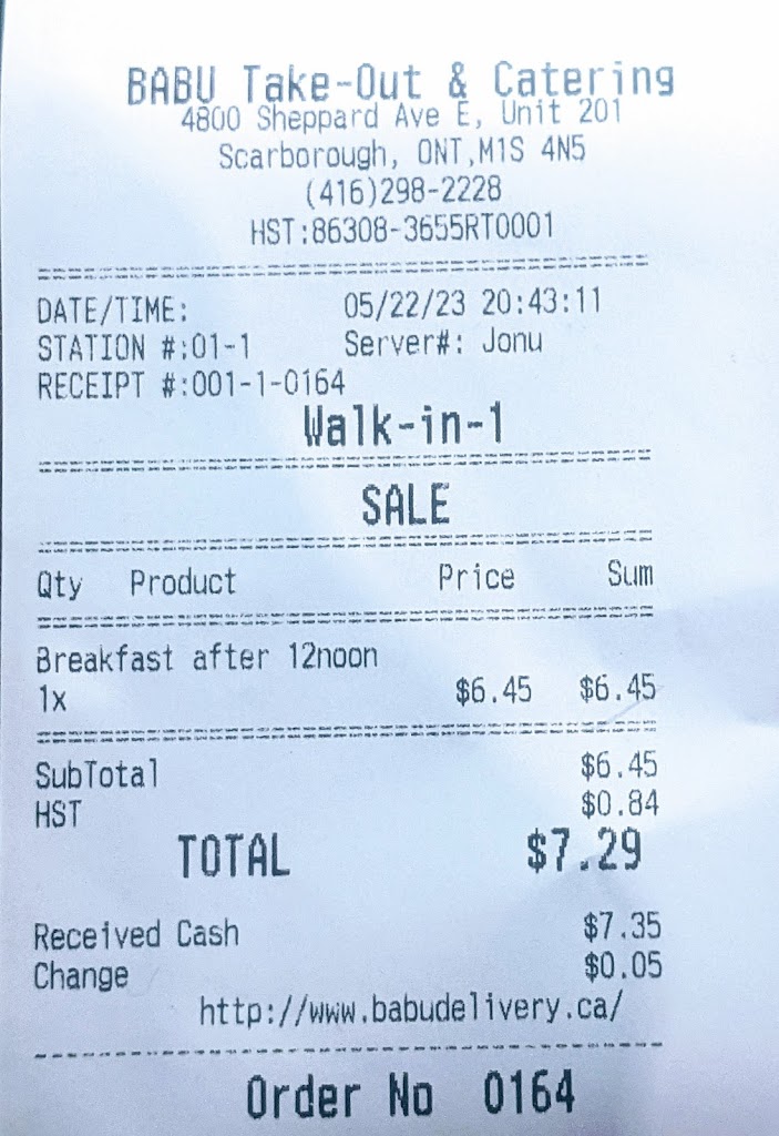 Best place to buy take-out food in Scarborough. Ive tried pleanty of such places but this is the best. They have special food each day which is available at so cheap price. My favourite is their breakfast combo which only cost about 6 dollar for everything including tea.