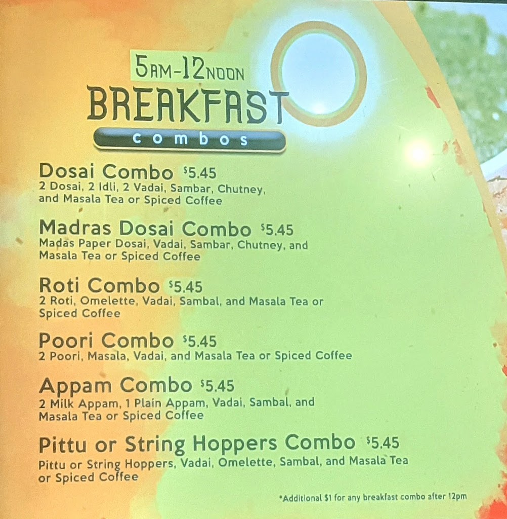 Tremendous food with a cheapest rate in Toronto for south indian food. Delicious taste and adequate quantity. I recommend to try their idli breakfast which is around 5$ and consists of 4 idli 2 mendu wada, sambhar, coconuts chutney and coffee. Really incomparable and its open as early as 6:00 am.