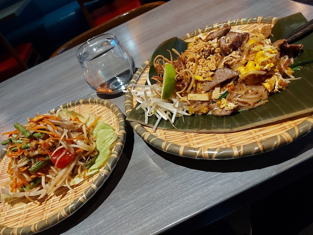 I had Chicken Pad Thai and another person had Shrimp Pad Thai. They charged $3 extra for the shrimp. My Pad Thai was very good but still searching for that WOW, THIS IS THE BEST PLACE FOR PAD THAI THAT I CAN ONLY GET IN Thailand moment. I cant give the place a 5* for atmosphere as we did not eat inside but it looked very nice. Parking: Its on Queen St. So you should be able to find parking I the area. There is also a Green P in the area.