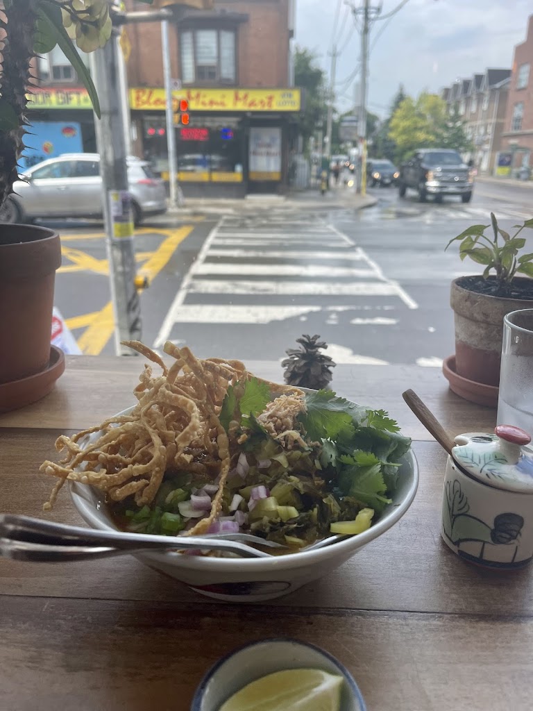 An authentic Thai place in Toronto. I took Khao Soi Chicken, which is equivalent to coconut milk noodles in Burmese. This is a hidden jewel in Toronto. The price is fair and the place is cozy too.