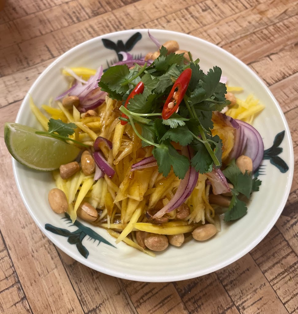 I wanted to like it more because the staff were lovely and the location is great, but to be honest the khao soi (their primary offering on a very limited menu) didn t live up to expectations at all. It was bland with huge bony pieces of chicken. The mango salad had enormous pieces of raw red onion that detracted from the dish. I m sad to say this is a pass for me.