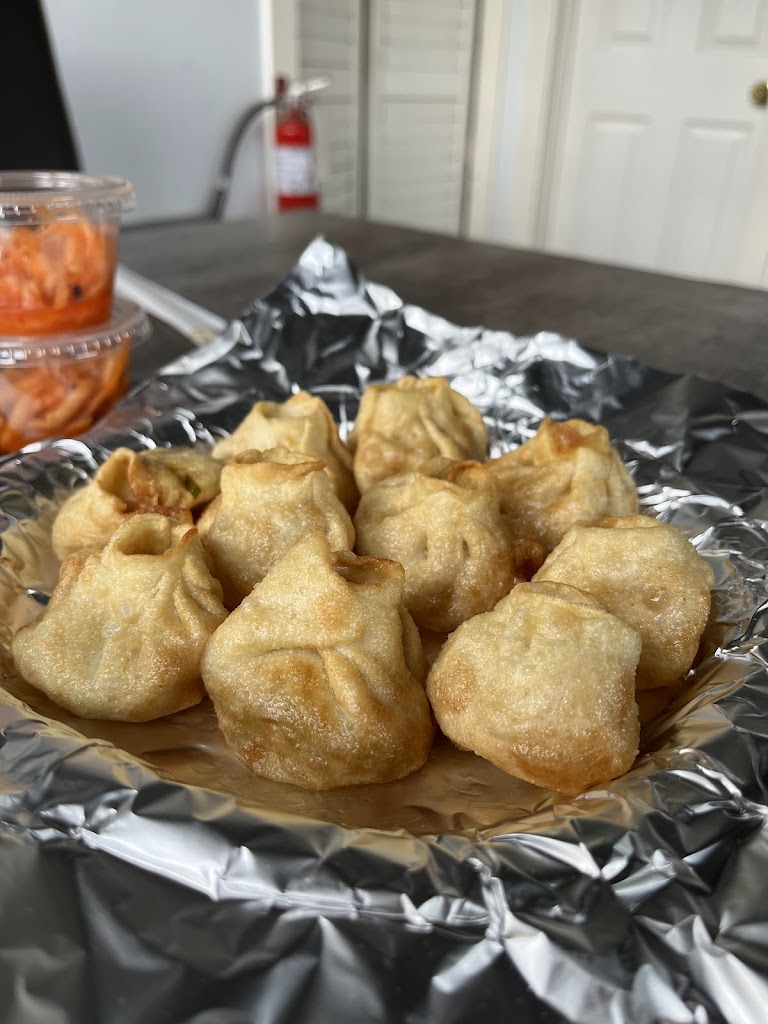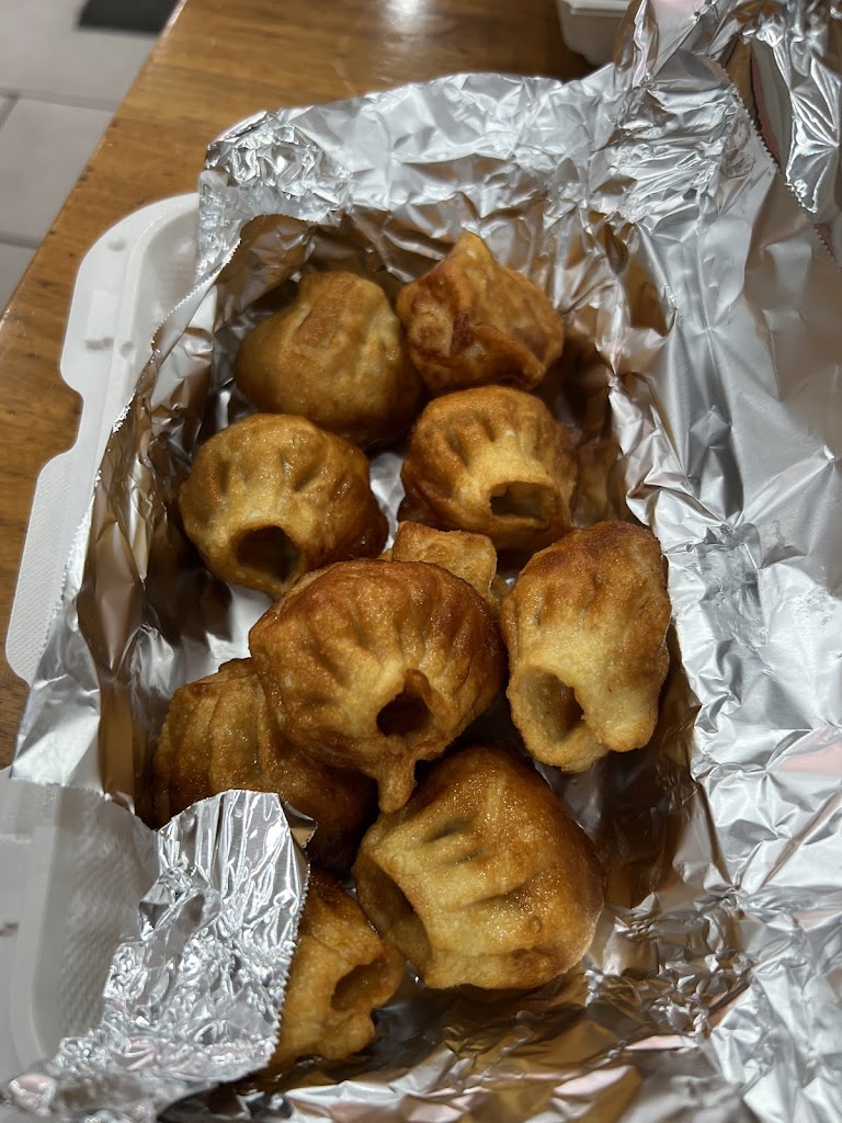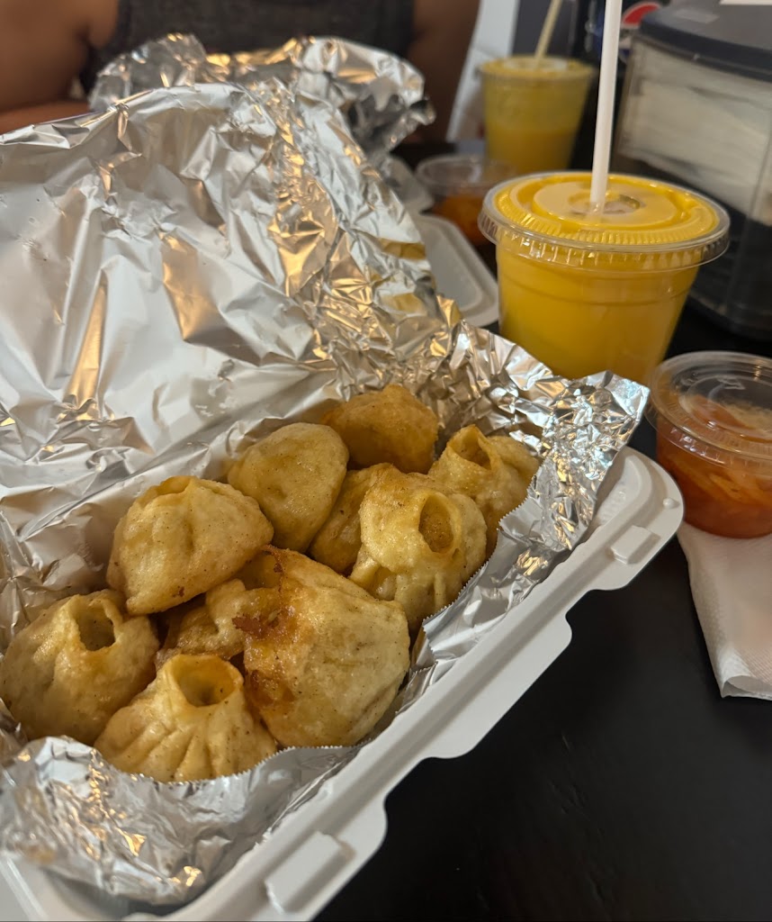 We had the fried potato and fried beef momos and they were to die for! Definitely try the sauces bc they were fire and don’t sleep on the mango lassie! So good!