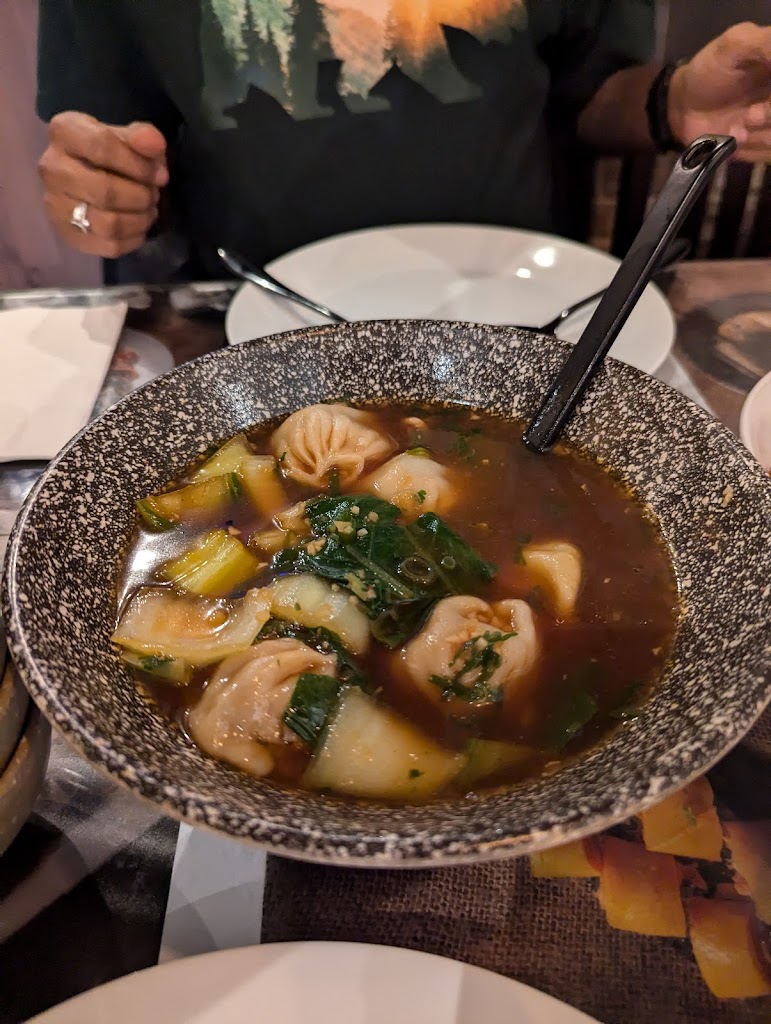 So good! The soup was so tasty and the pan fried momos were all good. They recommended we try all the options and we did and it did not disappoint. Our favorites were the beef, vegetable, and paneer but really you can t go wrong with any of the options. We had the beef with short noodle soup and the flavors were so good. I don t think there is a bad item on the menu. Highly recommend.