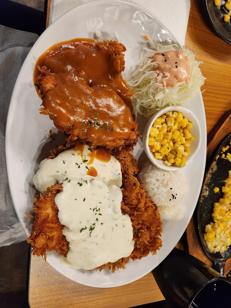 First time visit. The chicken cutlets are sooo good. They give a really big serving. I tried the combo original sauce and cream sauce. The brown sauce is really tasty. Also ordered thw snow cheese ( cutlets topped with mozzarella). We also tried the corn cheese and it was delicious!