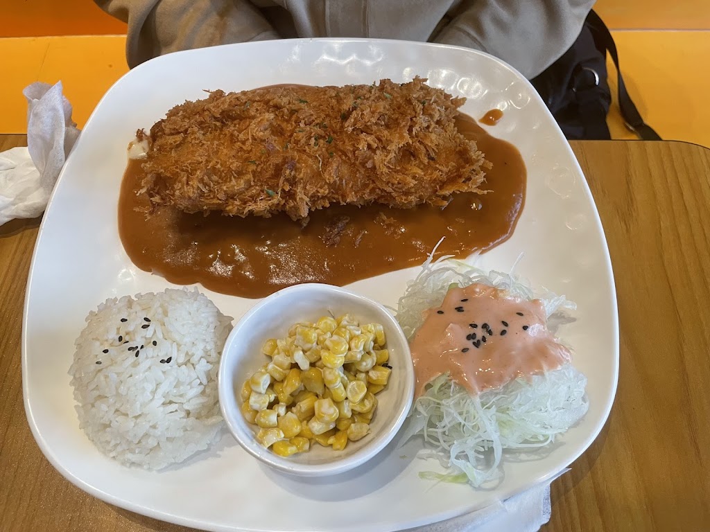 We ordered the brown donkatsu (pork) and corn cheese as an appetizer. The portion for donkatsu was really good and the spice level (1) was perfect for us. I would recommend spice level (2).