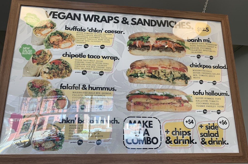 I am not vegan and found their food to be so so good and satisfying wow. We got the banh mi tofu sandwich and the buffalo chicken wrap, both 10 outta 10. I just wish they had a little table out front or something but still 100% will go back.