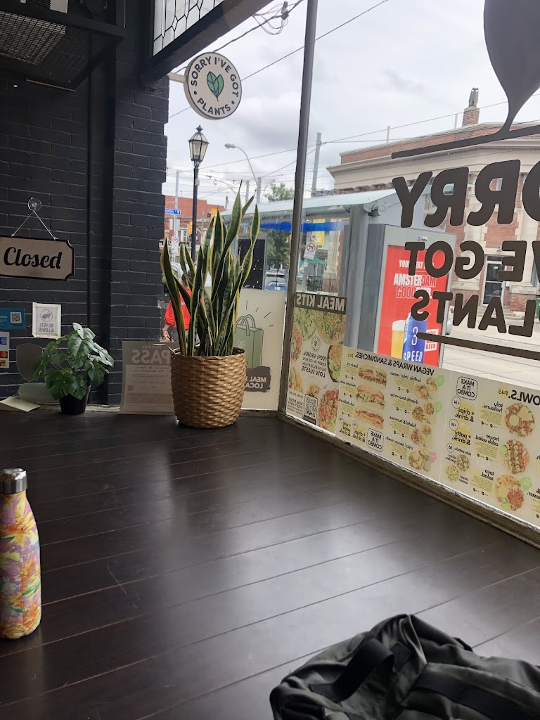 I came Into “Sorry I’ve got plants” ridiculously hungry. I got the chipotle Taco wrap upon recommendation from Abby. Didn’t take a photo cause I devoured it before I could think to. Super filling like she said, and really tasty. Clearly fresh ingredients, and well made. No exact seating indoors, but was able to sit on the large window sill and enjoy.