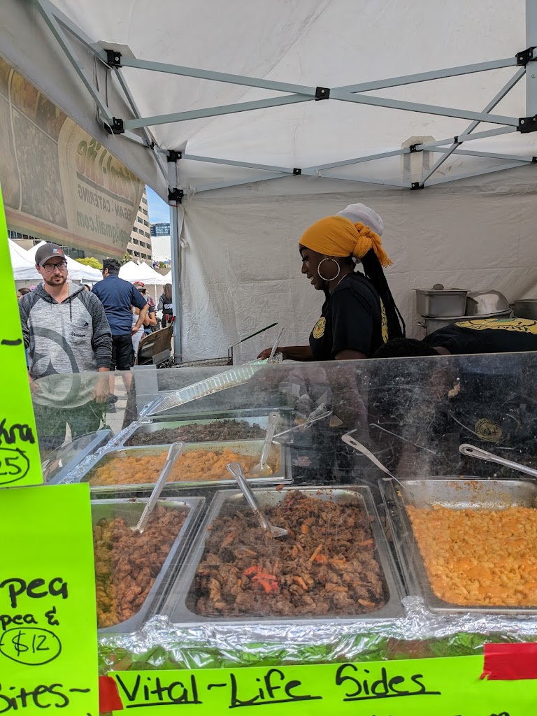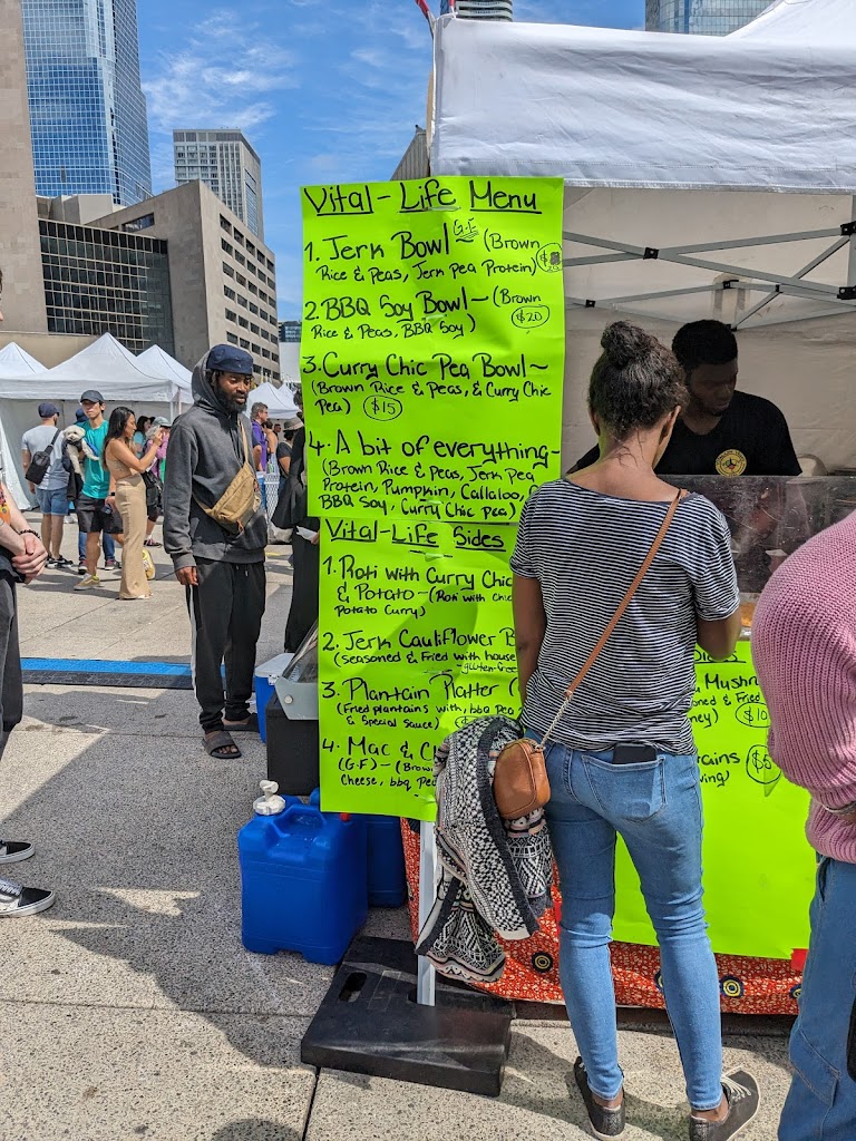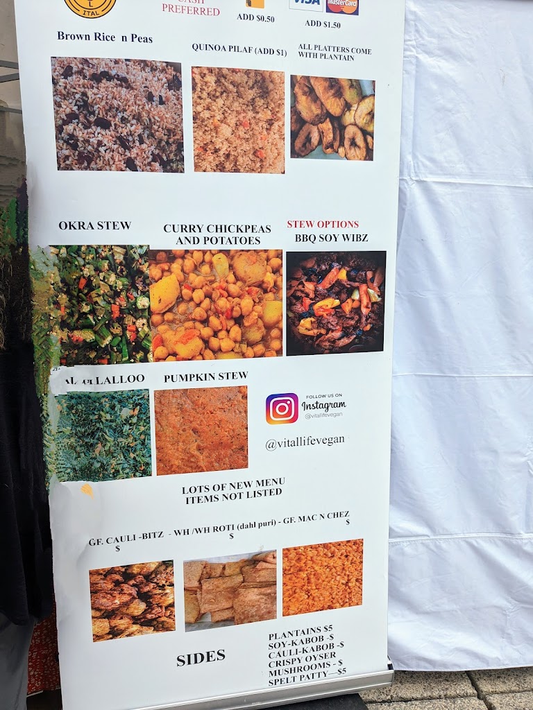I was excited to see Vital Life Vegan at this past weekend's Veg Fest in TO. There had a long line as expected as I heard the food was excellent. The Caribbean-inspired vegan dishes are prepared with love and care and they use fresh and wholesome ingredients. The vegan soy protein and mac and cheese were delicious, well seasoned and full of flavor. The pumpkin and plantain were sweet and satisfying with generous portions.The staff are very friendly and are happy to explain the dishes and may let you try something if you ask nicely. Definitely try a homemade drink with your meal like the Hibiscus ginger drink. I highly recommend Vital Life Vegan to anyone looking for a satisfying, tasty and healthy vegan meal as the chef is very talented and creative. You will not be disappointed.