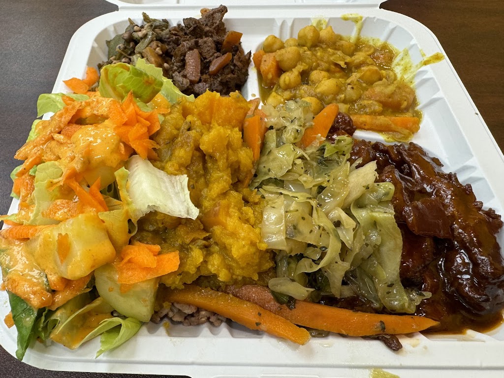 Amazing food and so much culture. Try their sorrel and ginger drinks, so good! I had Their collard greens, Lima beans, BBQ soy and curried chick peas with rice;words cant describe how good it was. A++ for quality and African culturalistic vibes.
